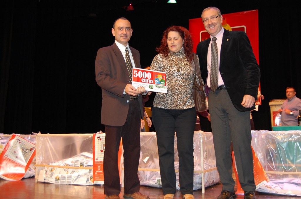 La primera afortunada va ser Angeles Martos Carrasco, que es va emportar el premi de 5.000 euros i que es trobava present al teatre durant el sorteig. Posteriorment es va repartir el premi de 3.000 euros, per a Vanessa Romero, els dos de 1.000 euros per a Maria Isabel Buitrago i Rosa Meitadier, que també estava entre el públic de l'Auditori.