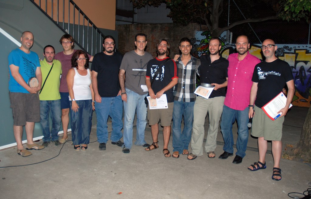 Foto 1: El guanyador del Certamen de Curt i el del Curt Express, amb els organitzadors.