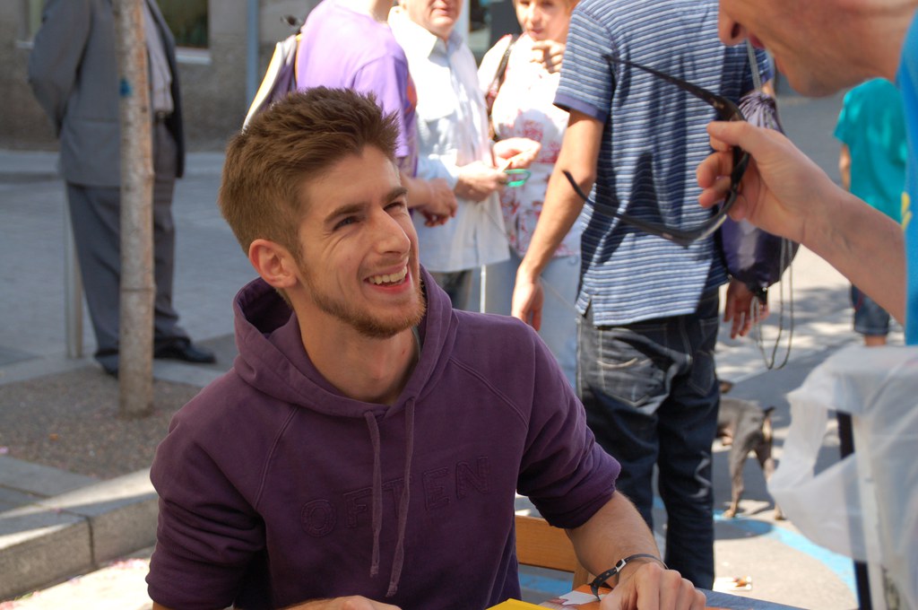 FOTO: Aleix Saló, signant al Racó de les Lletres Locals durant el Sant Jordi a la Rambla de 2011.