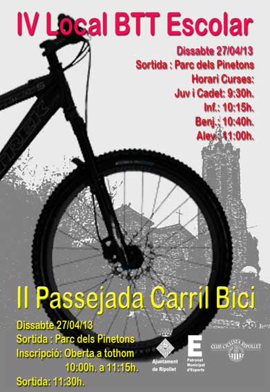 El dia 23 finalitza el termini per inscriure's a la IV Local BTT Escolar