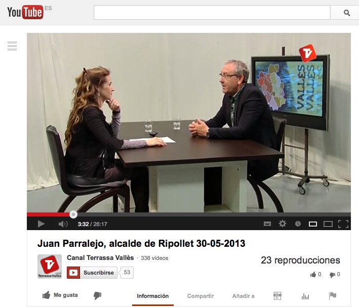El Canal Terrassa Vallès va realitzar una entrevista a l'alcalde de Ripollet, Juan Parralejo, el passat dijous, en el marc de la ronda de monogràfics per diferents municipis, amb l'objectiu de fomentar la identitat comarcal. El programa repassa l'actualitat de la vila i, especialment, les iniciatives de promoció de l'ocupació i la riquesa de la vida cultural local, convidant als televidents a assistir a la celebració del Corpus d'aquest diumenge.