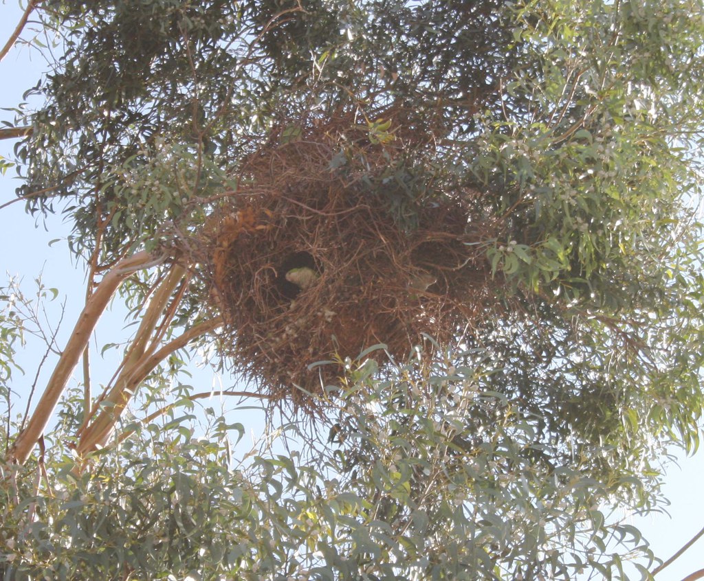 Aquesta espècie d'aus acostuma a fer el niu en les palmeres, però com han estat molt afectades per la plaga del morrut, les cotorres s'han hagut d'adaptar i buscar noves alternatives. Ara trien arbres d'altres espècies, amb la condició que siguin ben alts, com ha estat el cas dels eucaliptus.