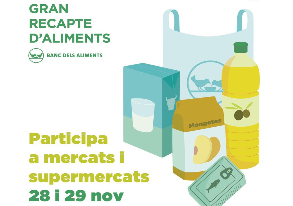 Quant als productes, principalment es demana oli, llet, llegums i conserves de peix i carn. Recordem, a més, que aquelles persones que no poden apropar-se a un punt de recollida els dies 28 i 29 de novembre, poden donar aliments on line, des del web granrecapte.com. En aquest web també poden apuntar-se per ajudar en la classificació dels aliments recollits, en torns de 4 hores.