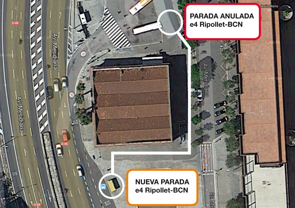 La línia d'autobús e4 Barcelona-Ripollet canvia la ubicació de la parada de Fabra i Puig