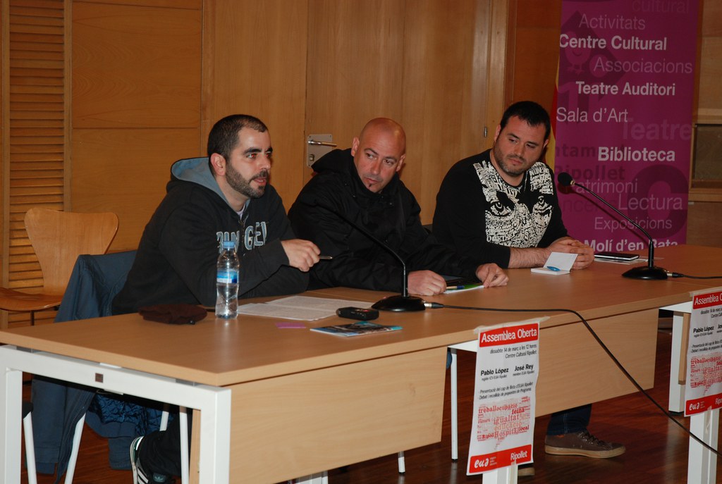 El Centre Cultural va acollir el passat dissabte, 14 de març, l'assemblea oberta on EUiA va presentar Pablo López com el seu candidat per a les properes eleccions municipals del mes de maig. L'acte va comptar amb les intervencions de José Luís Rivera, membre de la direcció comarcal d'EUiA i coordinador d'EUiA a Barberà del Vallès; José Rey, membre d'EUiA a Ripollet i del mateix Pablo López, actual regidor pel grup d'ICV-EUiA a Ripollet.