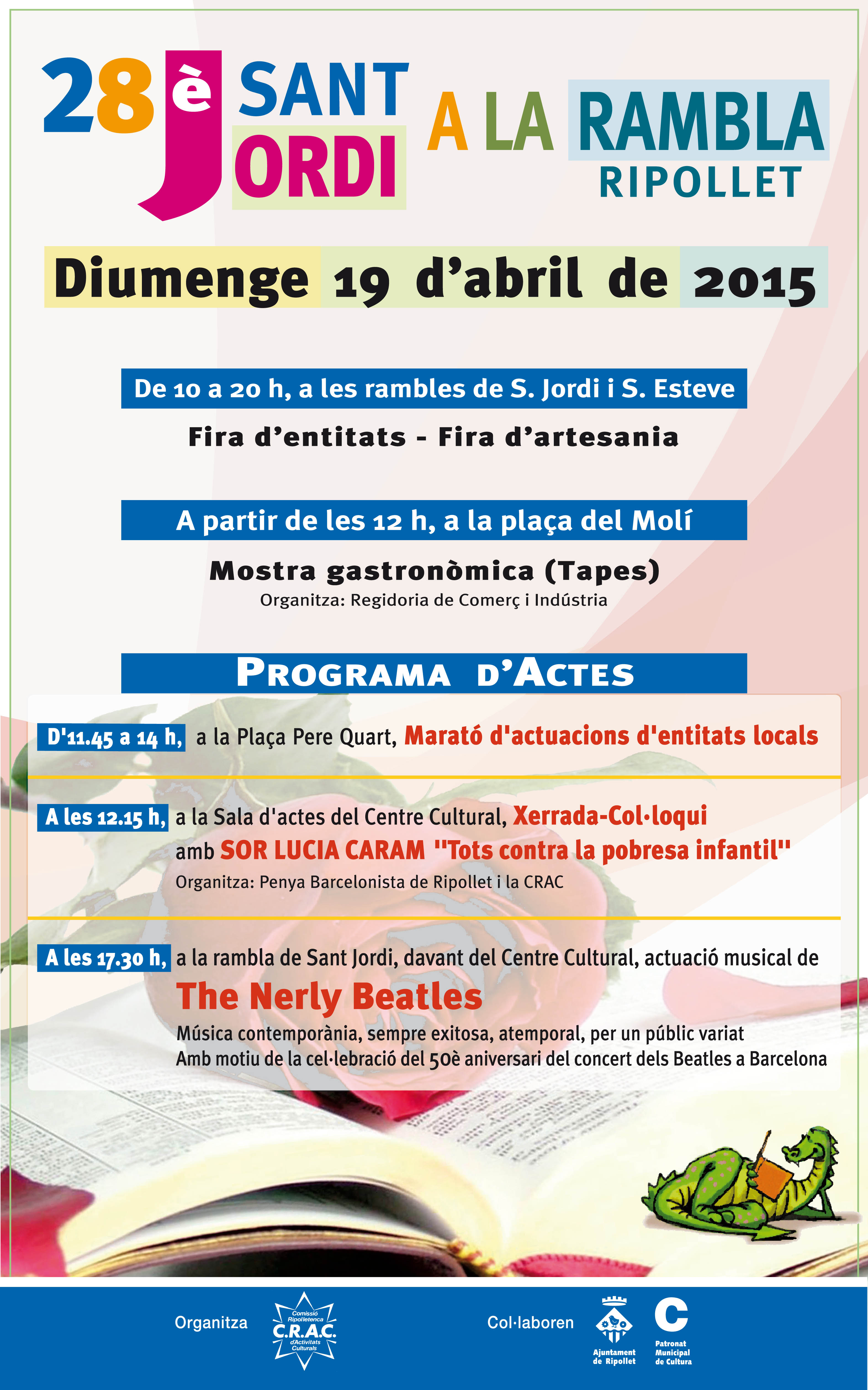 Música, entitats, artesania, tapes i la visita de Sor Lucía Caram, al Sant Jordi a la Rambla 2015