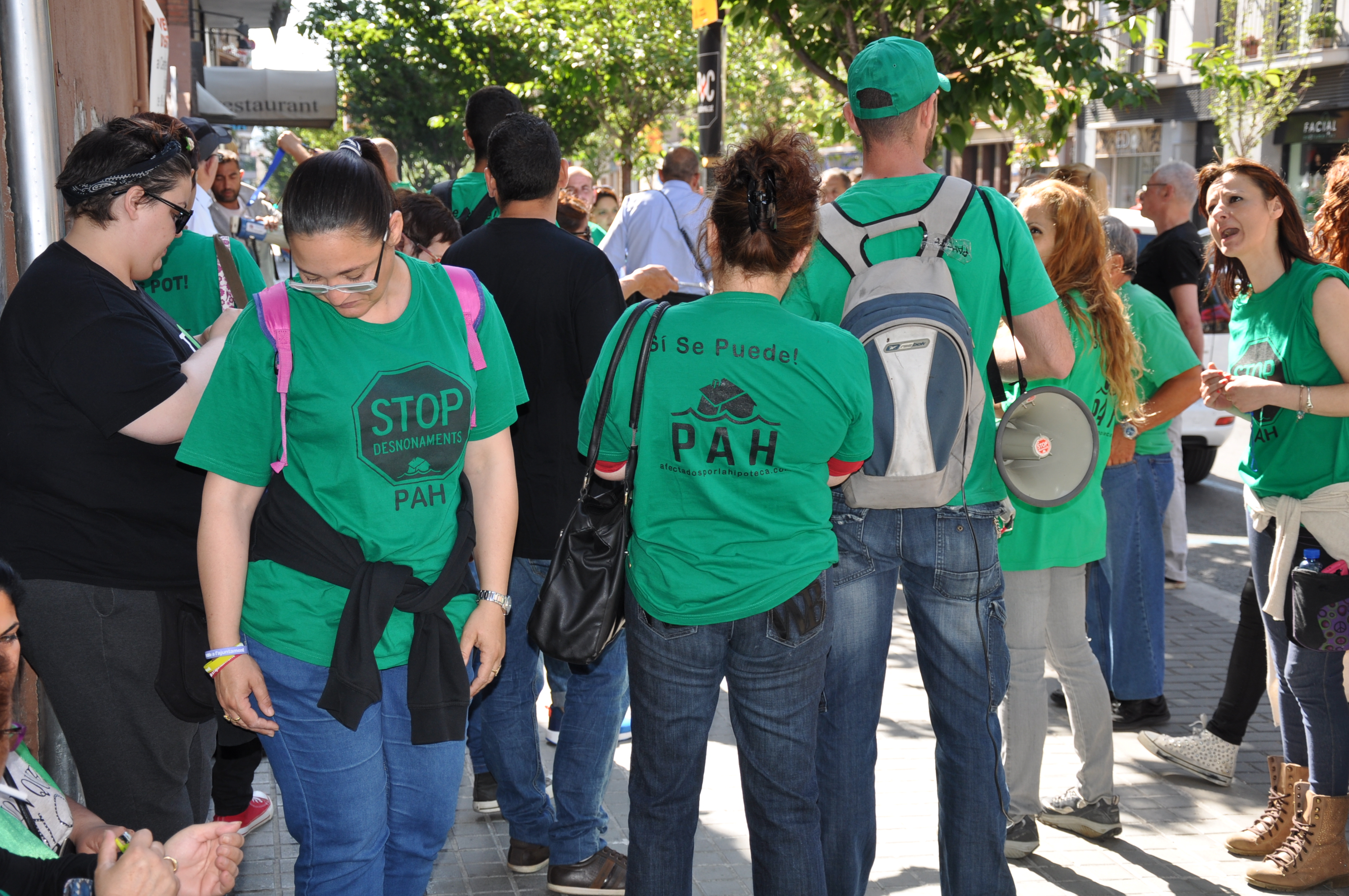 Acció de protesta de la PAH davant l'oficina de Bankia de la Rambla Sant Jordi