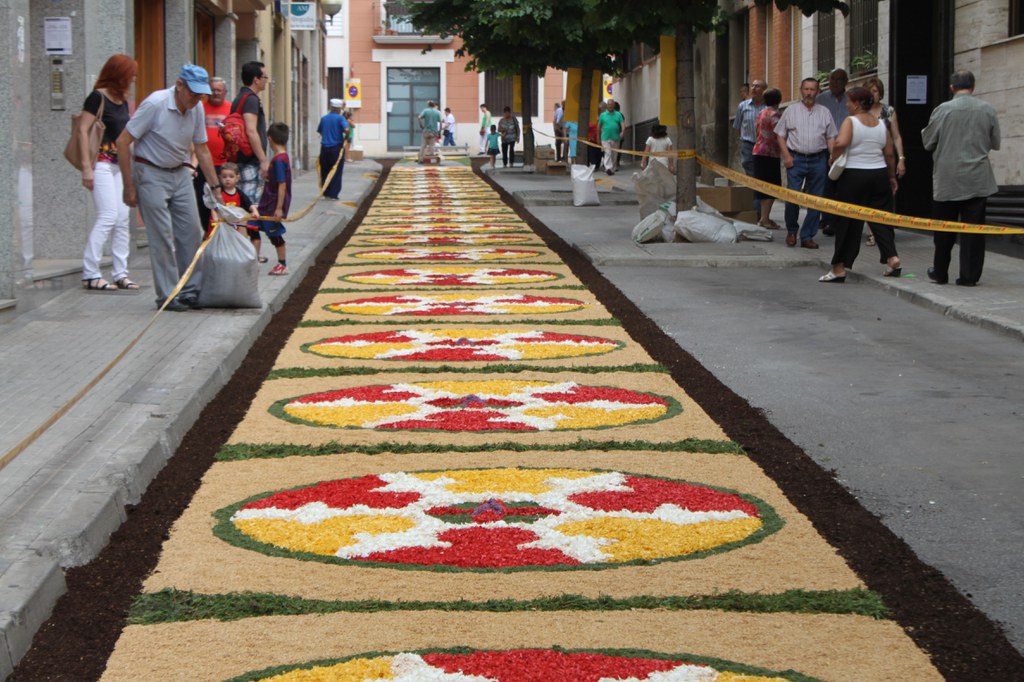 - A les 8 hores, inici de la mostra de catifes florals als carrers del nucli antic. Pot participar-hi tothom que vulgui. A partir de les 12 h i fins a les 20 h es podran visitar les catifes.