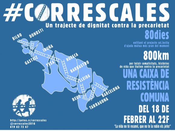 El Correscales constarà de 80 etapes que passaran per 80 poblacions basques, navarreses, aragoneses i catalanes en commemoració de l'anomenada marea blava, una vaga que van realitzar els treballadors subcontractats i autònoms de Telefónica-Movistar l'any passat.
