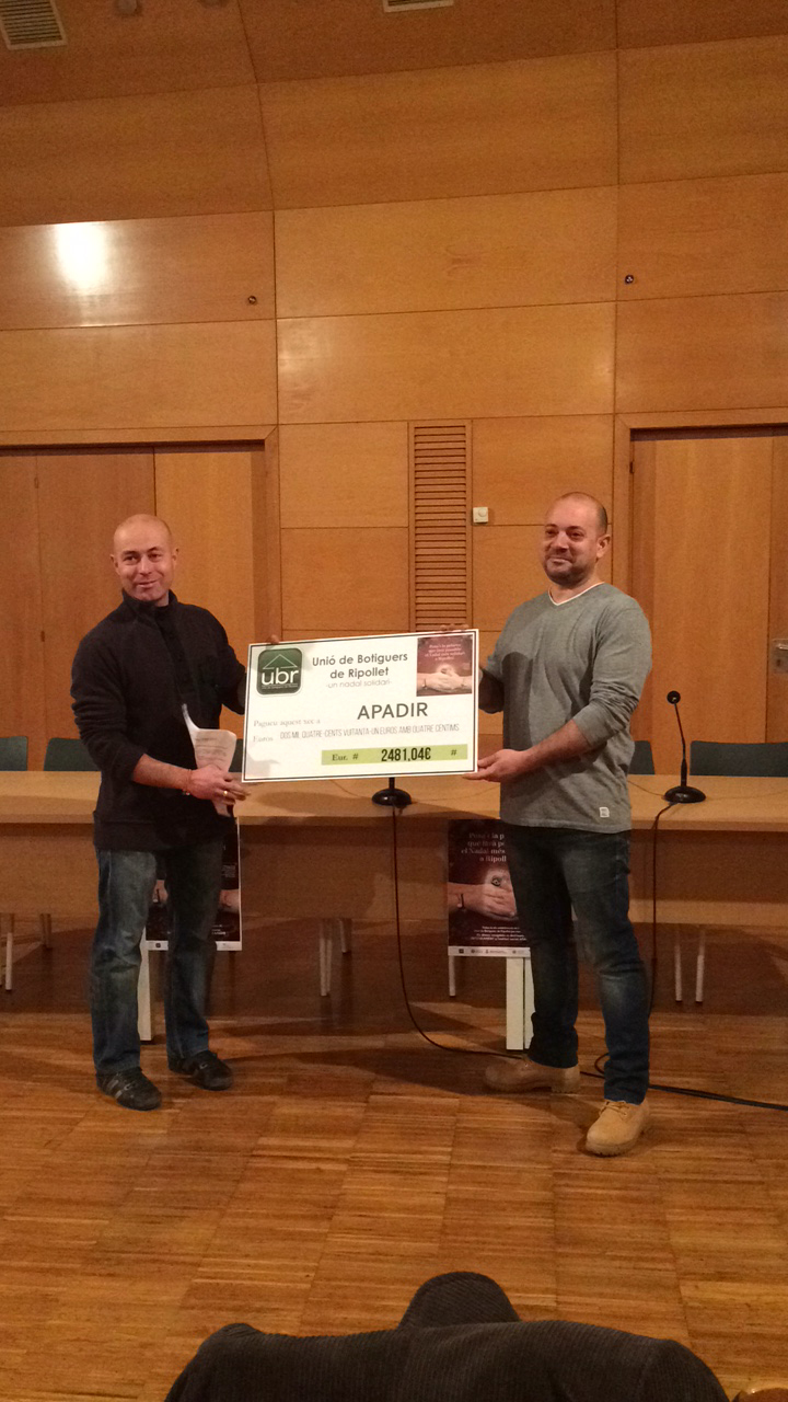 La UBR lliura a Apadir els 2.481 euros recaptats amb la venda de polseres solidàries