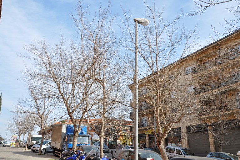 Aquests espècimens se substituiran per lledoners, uns arbres que creixen molt bé en altres carrers de la vila. Quan és adult és un arbre de gran port que podrà desenvolupar-se sense entrebancs en aquesta zona, ja que les voreres tenen una mida adequada.
