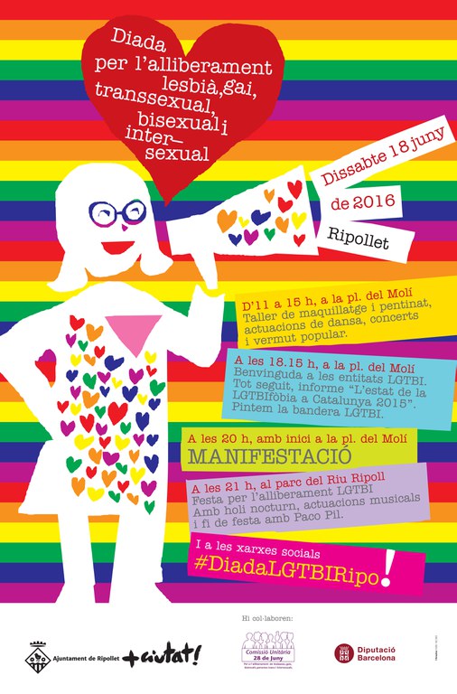 Han confirmat la seva presència la Directora General d'Igualtat de la Generalitat, Mireia Mata, i representants polítics de tots els municipis de la Xarxa LGTBI de Catalunya. També assistiran a l'acte de Ripollet diferents membres del col·lectiu Lesbians and Gays Support the Miners (LGSM), que van recolzar els miners britànics durant la vaga dels anys 70 en el mandat de Margaret Thatcher, convertint-se en un símbol de la lluita dels drets dels treballadors i dels drets LGTBI. Ripollet retrà un homenatge al grup LGSM. També es dedicarà la jornada a les víctimes dels fets succeïts a Orlando, pel que es penjarà la bandera LGTBI a mitja asta amb el crespó negre.