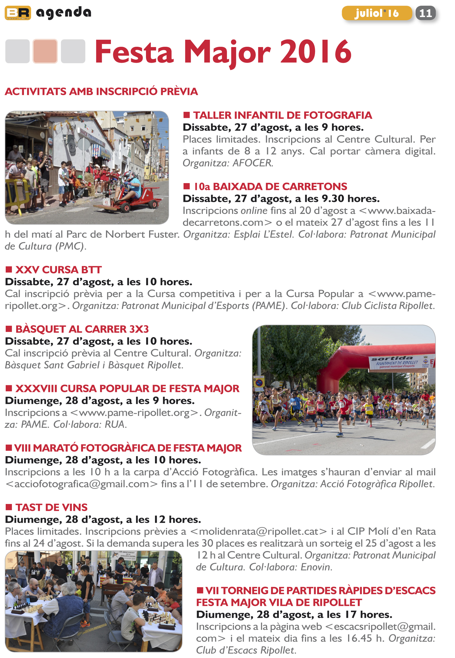 Inscripció prèvia per a algunes activitats de la Festa Major #FMripollet16