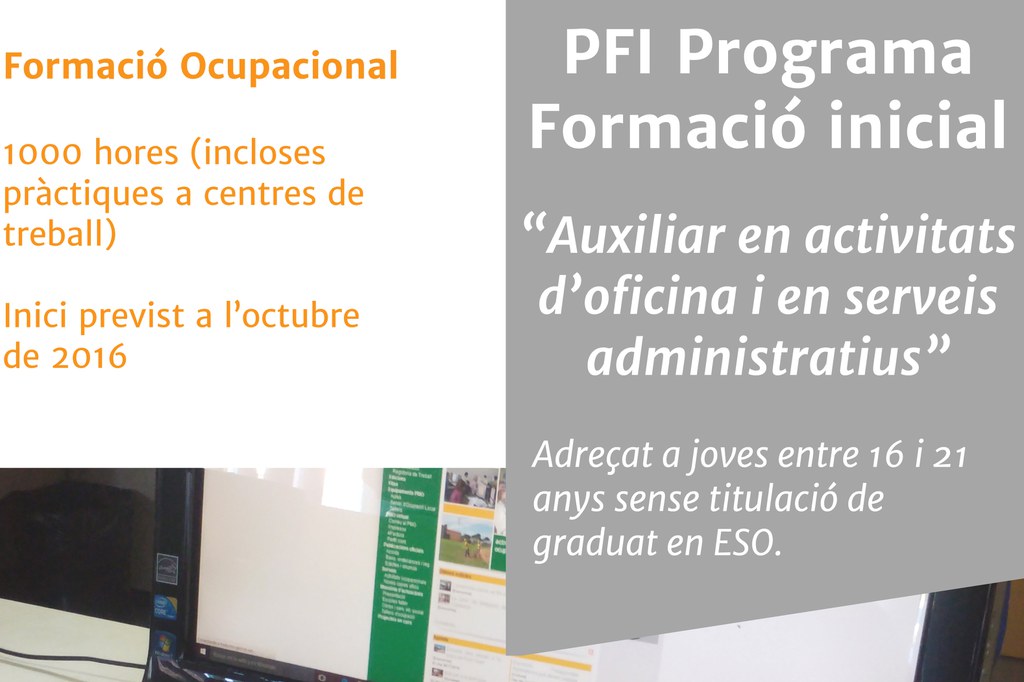 També hi haurà sessions informatives per als dos Programes de Formació Inicial (PFI), per als quals cal tenir entre 16 i 21 anys, no tenir el títol de l'ESO ni estar treballant.