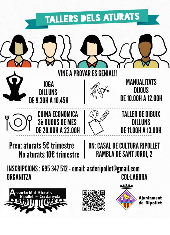 L'entitat també ha iniciat els seus cursos dirigits principalment a aturats, que es realitzen al Centre Cultural. Hi ha tallers de ioga (dilluns, de 9.30 a 10.45 h), manualitats (dijous, de 10 a 12 h), cuina econòmica (3r dimarts de mes, de 20 a 22 h) i dibuix (dilluns, d'11 a 13 h). El preu dels tallers és de 5 euros/trimestre per als aturats, i de 10 euros al trimestre per als que no estan aturats. Per a més informació, trucar al 695 347 512 o escriure a asderipollet@gmail.com.