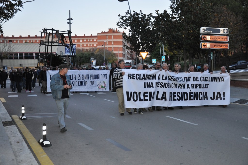 Al voltant d'un centenar de persones van participar en la manifestació convocada pel Club de Jubilats i Pensionistes de Ripollet dijous, 24 de novembre, a la tarda. Els manifestants van sortir des de la rambla de Sant Esteve i van finalitzar davant l'Ajuntament, on van llegir un manifest per demanar accions polítiques que facin realitat la residència.
