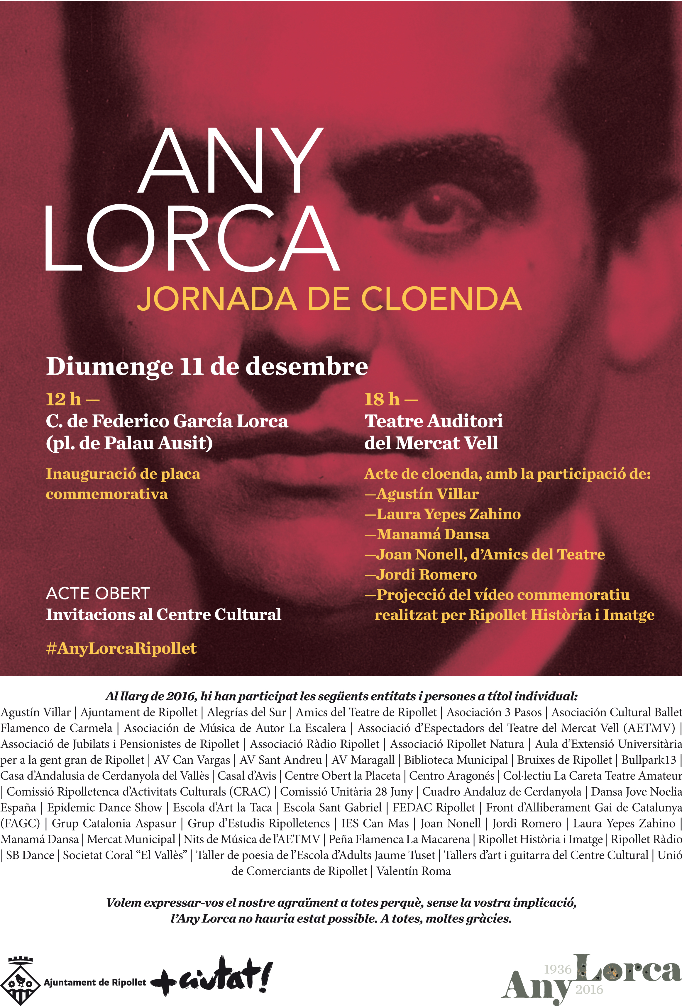El gran acte de cloenda de l'Any Lorca se celebrarà l'11 de desembre