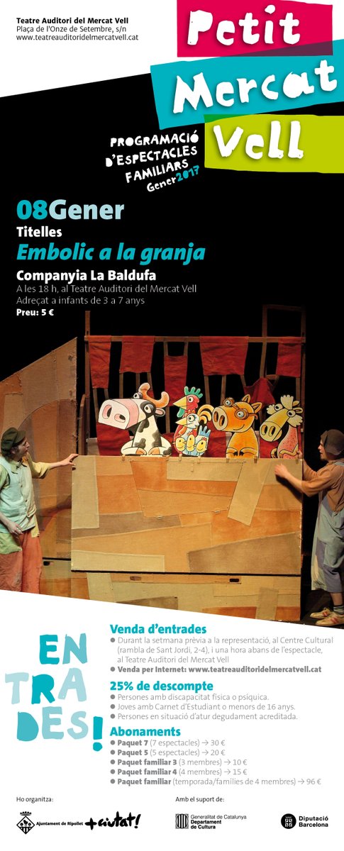 Embolic a la granja és la nova obra teatral familiar amb titelles de Petit Mercat Vell