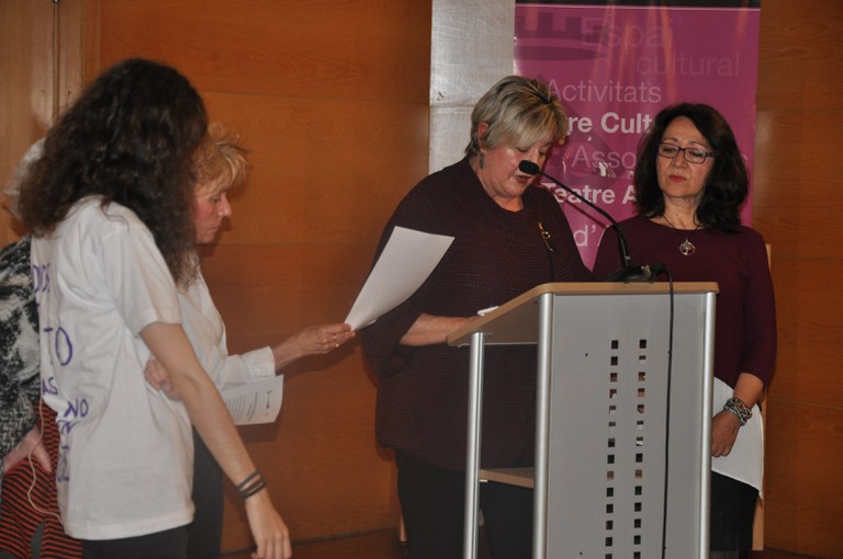 Tot seguit, representants de diverses entitats locals i de la Taula de Dones van llegir conjuntament el Manifest del Dia Internacional de les Dones. Després, la poetessa ripolletenca Carme Guasch va llegir dues obres reivindicatives seves, una en català i una altra en castellà.