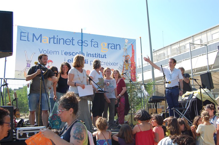 Amb una pluja de confeti llençada pel grup d'animació La Tresca i la Verdesca va finalitzar "El Martinet es fa gran", una festa per compartir entre tota la comunitat educativa i amb tot Ripollet dues demandes del centre: la remodelació del jardí de l'escola i el projecte d'escola-institut. La festa també va comptar amb berenar, diverses actuacions i la lectura d'un manifest. Durant la jornada es va aprofitar per continuar recollint signatures entre els assistents i vendre diversos productes de marxandatge.