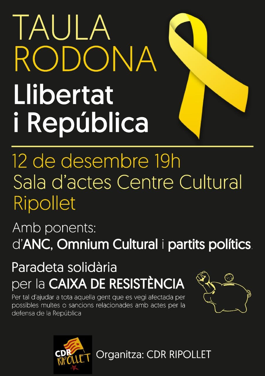 El CDR de Ripollet organitza una taula rodona amb el lema 'Llibertat i República'