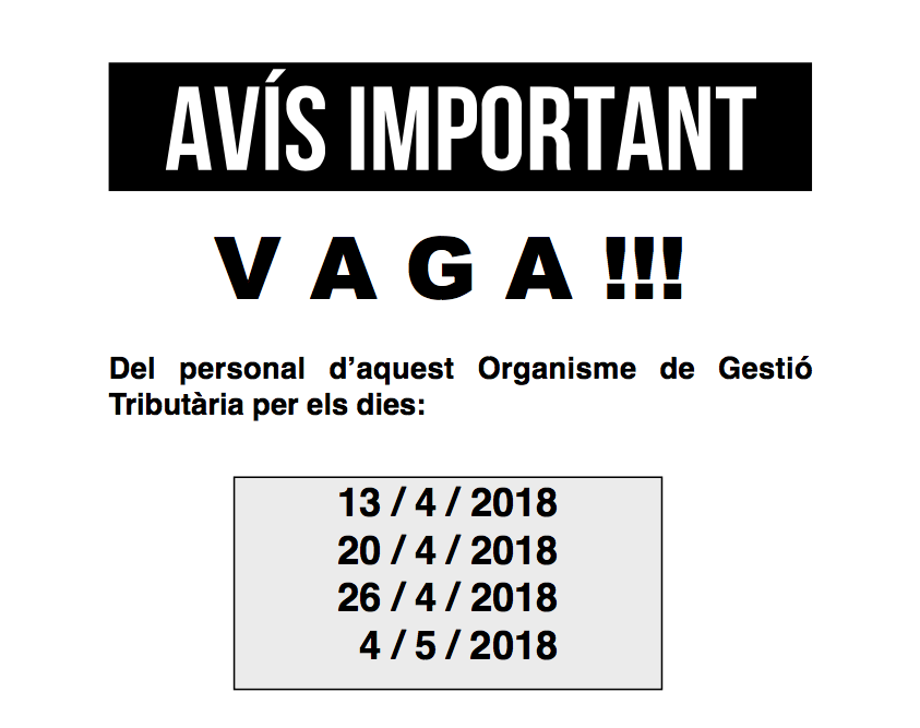 El personal de l'Organisme de Gestió Tributària convoca quatre dies de vaga