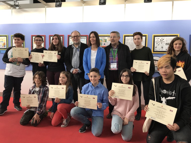 - Fotografia 2: Els diversos guanyadors del 7è Concurs escolar Saló del Còmic mostren els seus diplomes.