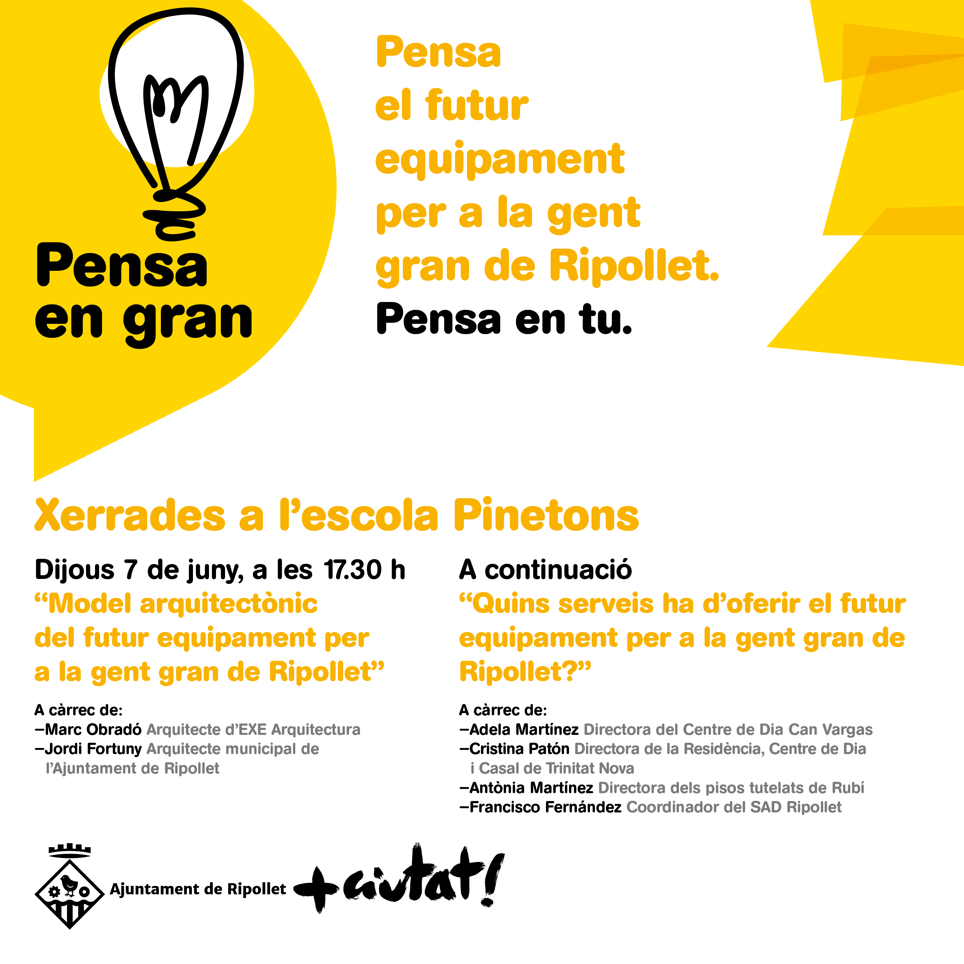 "Pensa en gran" organitza dues xerrades aquest dijous sobre el model d'equipament per a la gent gran
