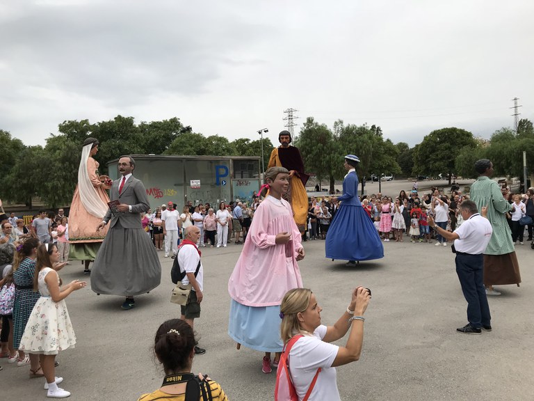 A la roda de premsa de presentació del 4 de desembre, la presidenta de la CRAC, Montserrat Casamitjana, explicava la vinculació de Maria Aurèlia Capmany amb Ripollet: "Va fer que la il·lusió de tenir gegants fos una realitat. Ens vèiem en l'obligació de retre-li homenatge a ella i al seu pare". En Pere i l'Elisenda van néixer el 1990 i va ser Capmany qui descobrí a l'entitat la història dels gegants cremats en un magatzem de Montjuïc, el 1936, els quals havien de participar en l'Olimpíada Popular de Barcelona, que es va haver de suspendre per l'alçament que donar inici a la Guerra Civil.