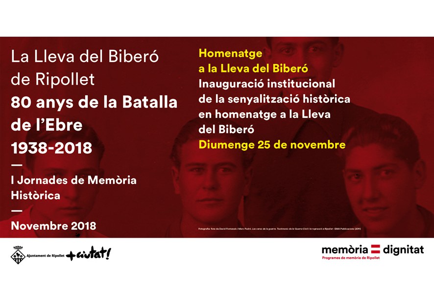 La Regidoria de Patrimoni i Memòria Històrica ha organitzat les primeres Jornades de Memòria Històrica de Ripollet, amb un programa d'actes que es desenvoluparà entre el 8 i el 25 de novembre. L'objectiu d'aquestes jornades és incentivar l'estudi, la recuperació, la protecció i la difusió de la memòria local. Aquesta primera edició s'ha volgut dedicar als joves de Ripollet de la Lleva del Biberó, que amb 17 anys van ser cridats al front de guerra per la 2a República. Alguns d'ells van combatre a la Batalla de l'Ebre, de la qual es commemoren els 80 anys.