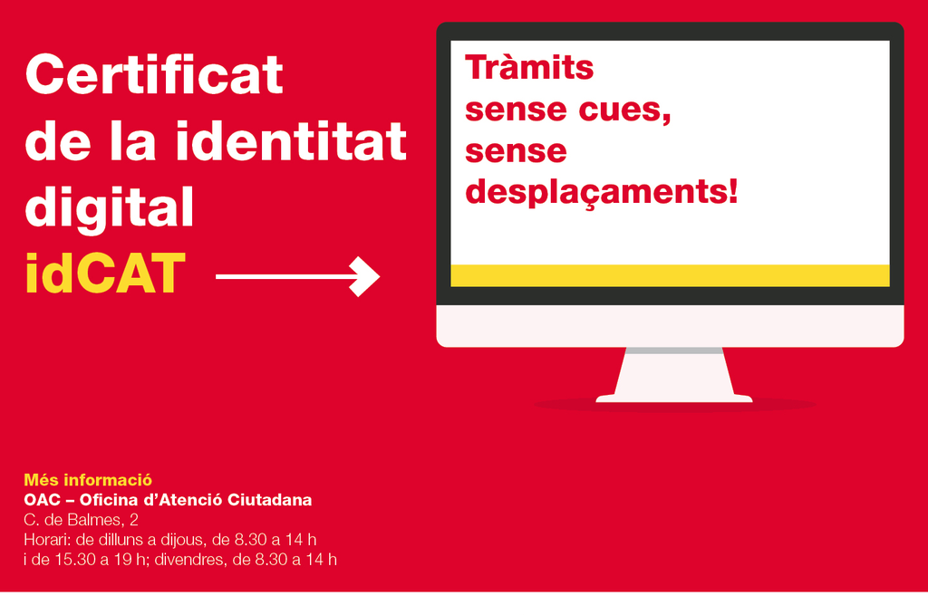 Per obtenir l'idCAT, cal adreçar-se a l'OAC amb el document d'identificació (DNI, NIE, passaport o DNI estranger). L'horari d'atenció al públic és de dilluns a dijous, de 8.30 a 14 h i de 15.30 a 19 h i els divendres, de 8.30 a 14 h. També es pot omplir un formulari de sol·licitud per internet i recollir el certificat a l'OAC.