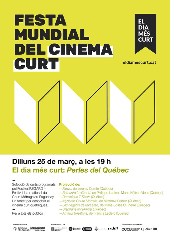 El dimecres 6 de març serà el torn pels més petits, amb la sessió 'Junior Beat' on es projectaran sis curtmetratges que parlen de l'amor, el medi ambient, els drets humans o l'esport. El dilluns 25, dins la sessió 'Perles del Québec', dedicada a adults, es projectaran una selecció de set curts programats pel REGARD, Festival International du Court Métrage au Saguenay. Una mostra rodona per viatjar i descobrir l'excel·lent estat de forma del cinema curt quebequès.