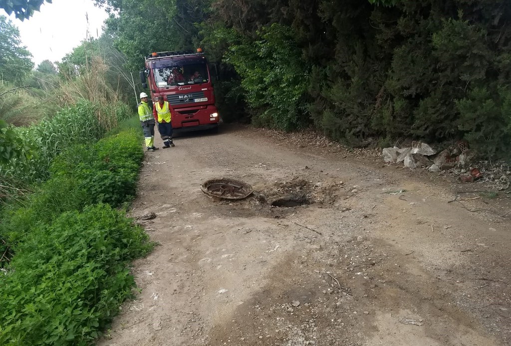 Iniciats els treballs de neteja d'un col·lector obturat paral·lel a la llera del riu Ripoll