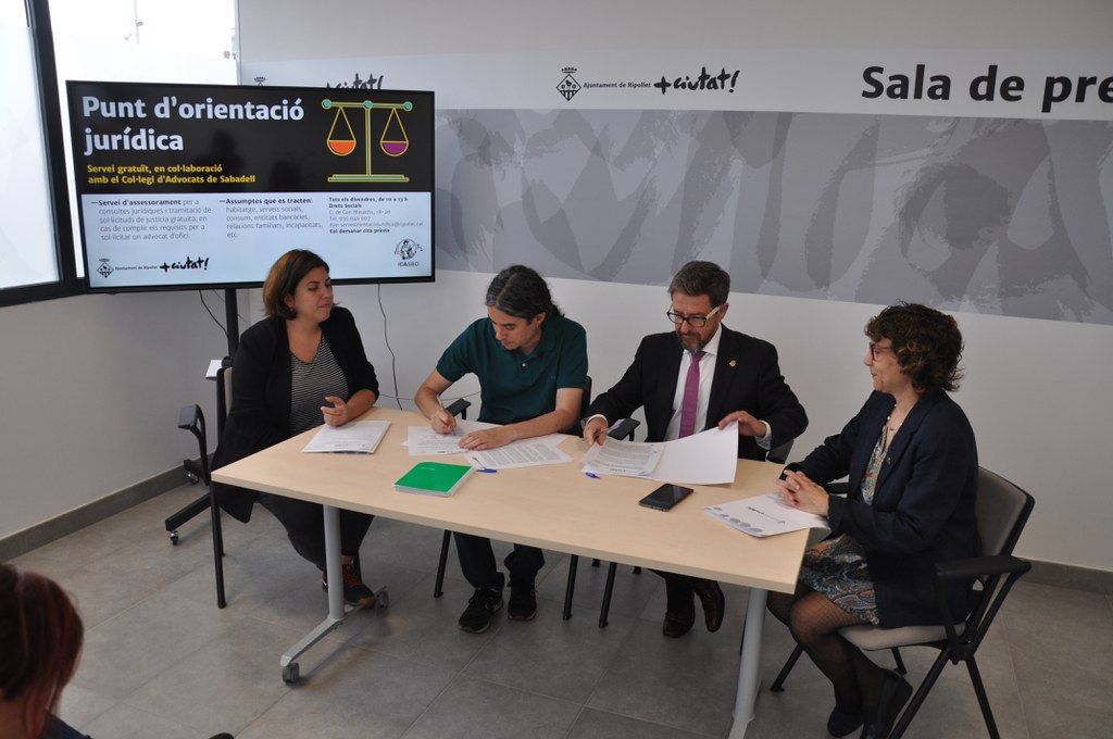 Dimarts, 11 de juny, en una roda de premsa, l'Alcalde de Ripollet, José M. Osuna i el Degà del Col·legi d'Advocats de Sabadell, Manolo Hernández, van signar el conveni del Punt d'Orientació Jurídica. Ha estat a conseqüència dels resultats positius que ha donat el període de prova del servei, que portava operatiu des del 15 de març i que actua una vegada a la setmana. Les dotze jornades que s'han dut a terme fins ara han tingut un total d'unes 60 visites, amb tanta assistència que els torns es dónen a tres setmanes vista.