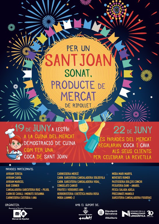 L'Associació de Venedors i Paradistes del Mercat Municipal endega la campanya 'Per un Sant Joan sonat, producte de Mercat', que reivindica l'ús dels ingredients locals i de mercat per l'elaboració de productes típics com la coca de Sant Joan.