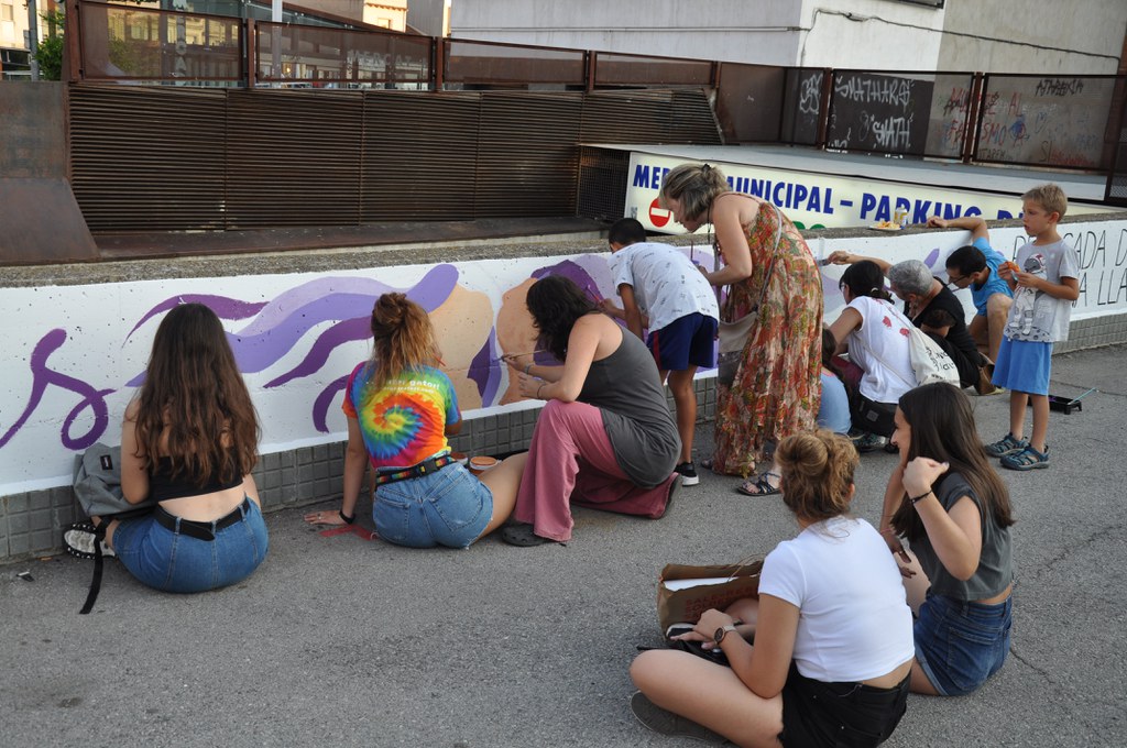 El Comitè de Dones repinta el mural de la plaça del Molí