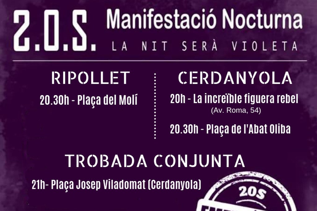 El Comitè de Dones de Ripollet ha organitzat per aquest divendres, juntament amb La Figa Rebel de Cerdanyola, una manifestació nocturna adherida al moviment "Emergència Feminista", que a nivell estatal organitza tot d'accions per aquest 20 de setembre per protestar contra l'augment dels feminicidis i les agressions sexuals.