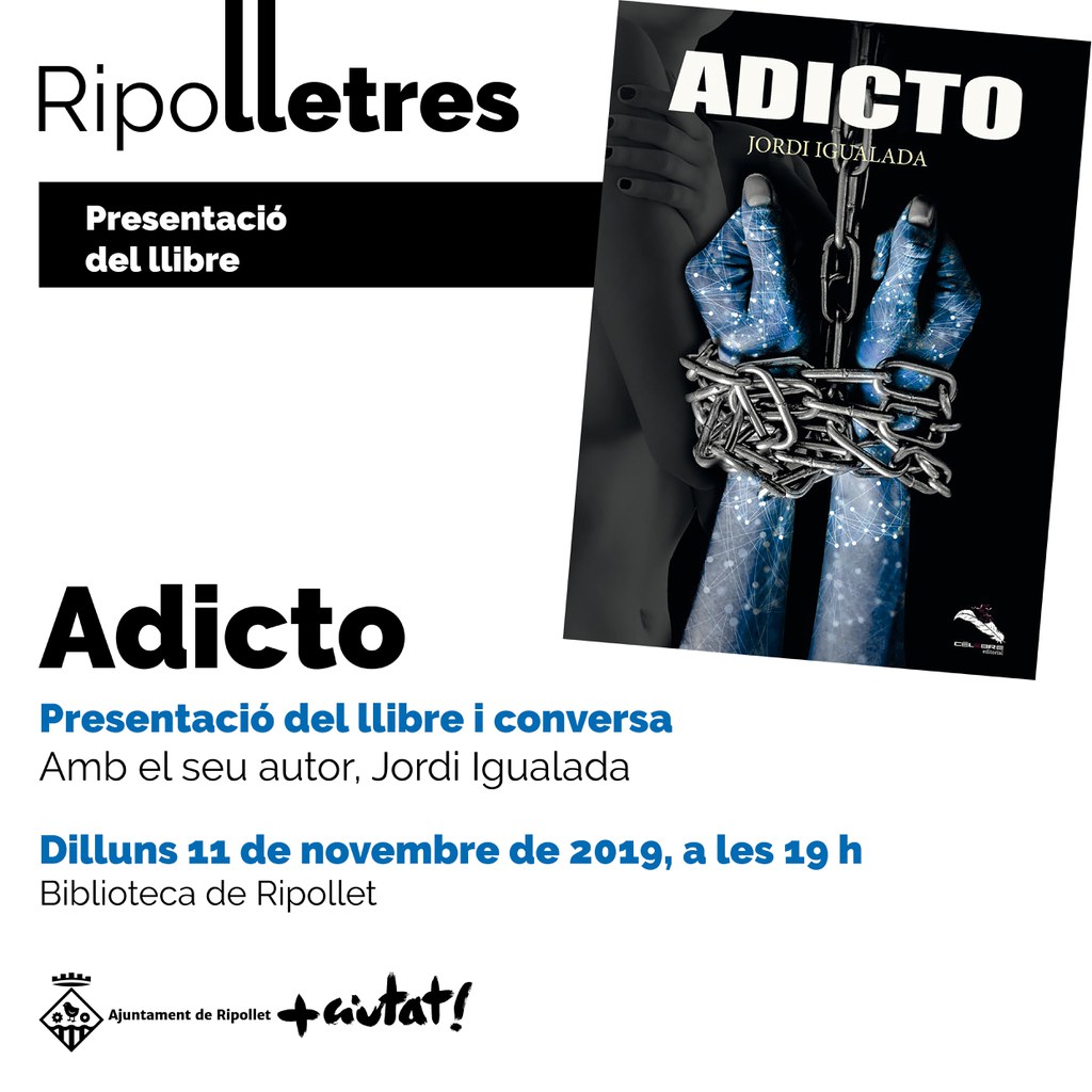 La Biblioteca Municipal, dins el seu programa Ripolletres, presenta dues novel·les d'autors locals. El dijous passat va ser el torn de Mireia Hernández, que va presentar en societat la seva òpera prima Mi mejor casualidad, una novel·la romàntica. Avui dilluns, a les set de la tarda, és el moment de Jordi Igualada, amb Adicto, un thriller sobre el món de mentides en què s'acaba veient embolicat un home addicte al sexe.