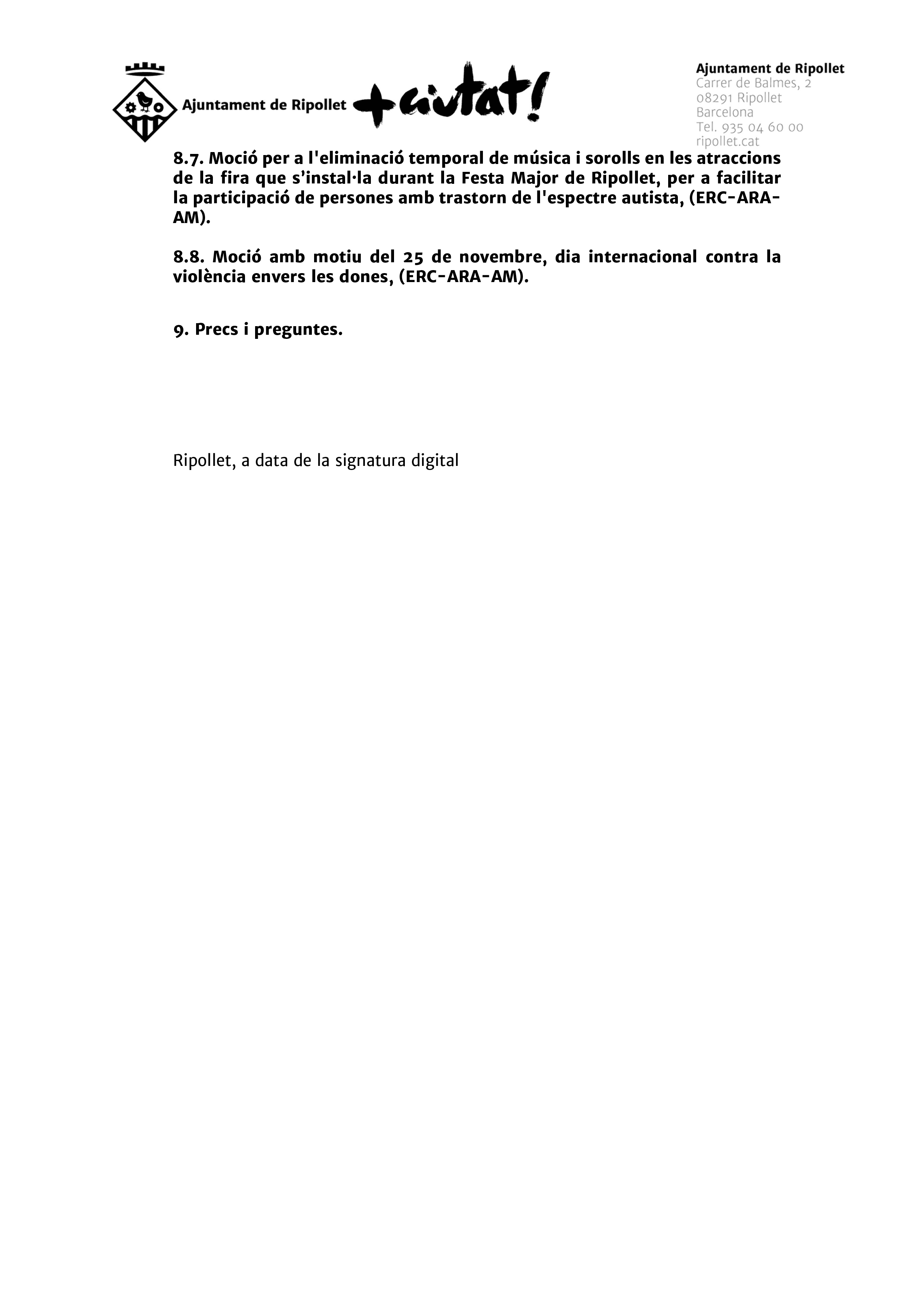 Avanç del Ple Ordinari del 28 de novembre