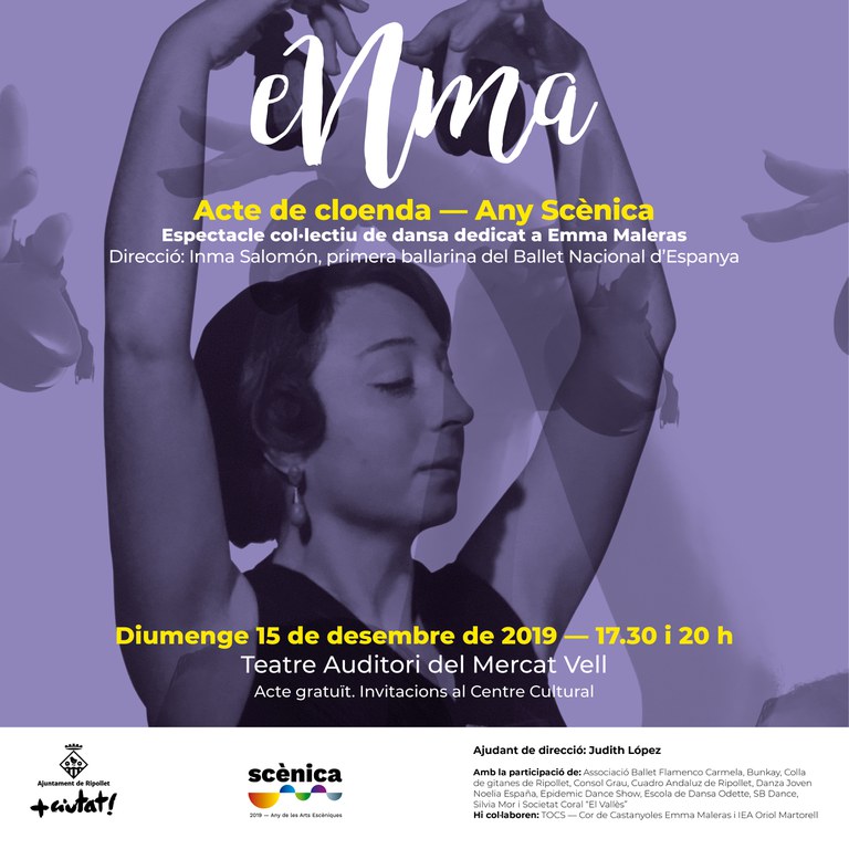 Aquest 15 de desembre s'estrena l'espectacle eNma, nom que duu el segell de dues dones, l'artista local i virtuosa de les castanyoles, Emma Maleras, en qui s'inspira, i Inma Salomón, primera ballarina del Ballet Nacional d'Espanya. Aquest treball és un projecte col·lectiu de dansa dedicat a la figura d'Emma Maleras i que durant tot aquest any han estat creant ballarins i ballarines de Ripollet amb la intervenció de diferents entitats de Ripollet com l'Associació Ballet Flamenco Carmela Epidemic Dance Show, Cuadro Andaluz de Ripollet, Danza Joven Noelia España, SB Dance, Escola de Dansa Odette, Colla de gitanes de Ripollet, Societat Coral "El Vallès", Silvia Mor, Bunkay i amb la col·laboració de Tocs-Cor de Castanyoles Emma Maleras i l'IEA Oriol Martorell. L'ajudat de direcció, a més, és la ripolletenca Judith López, d'Amics del Teatre.