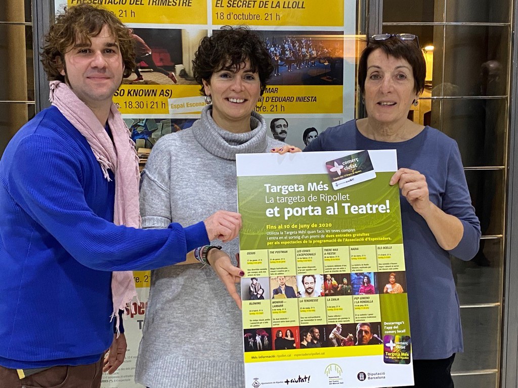 La Targeta Més!, la targeta de Ripollet que va néixer amb el propòsit de convertir-se en una Targeta de Ciutat, dóna el seu primer pas per aconseguir-ho. Aquest mes de desembre l'Ajuntament i l'Associació d'Espectador del Teatre del Mercat Vell han ampliat l'actual acord de col·laboració per a tota la programació de la seva 26a temporada de programació professional al Teatre Auditori del Mercat Vell, que finalitza el juny de 2020. Es tracta d'un acord per a promocionar la cultura a través de la Targeta Més.