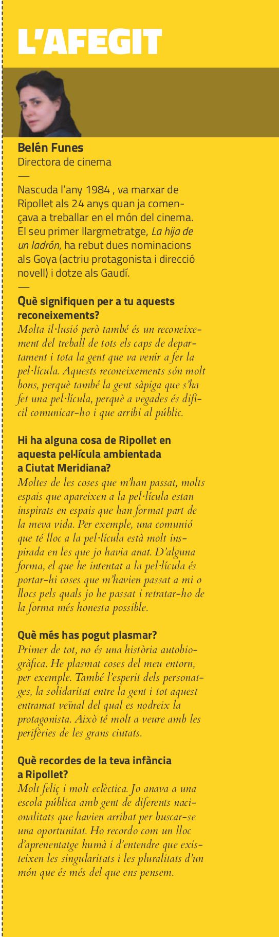 La ripolletenca Belén Funes, Premi Gaudí a Millor Directora per "La hija de un ladrón"