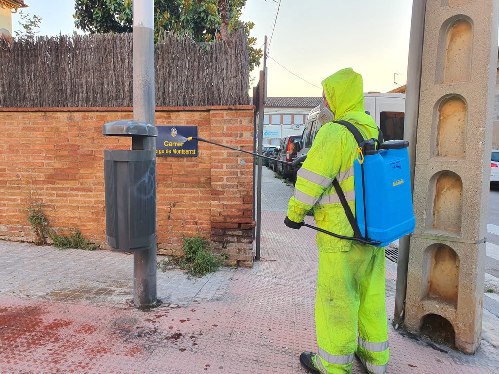 Pel que fa a les tasques de desinfecció, aquestes han restat reduïdes, amb un operari amb motxilla que realitza, de dilluns a divendres, la desinfecció d'espais públics concrets, com ara els CAP, el Mercat Municipal, la Comissaria dels Mossos d'Esquadra i de Policia Local. La resta de la jornada, desinfecta mobiliari urbà (contenidors, papereres, bancs, parades de bus i baranes), amb una freqüència de tot el mobiliari urbà de Ripollet d'un cop a la setmana.