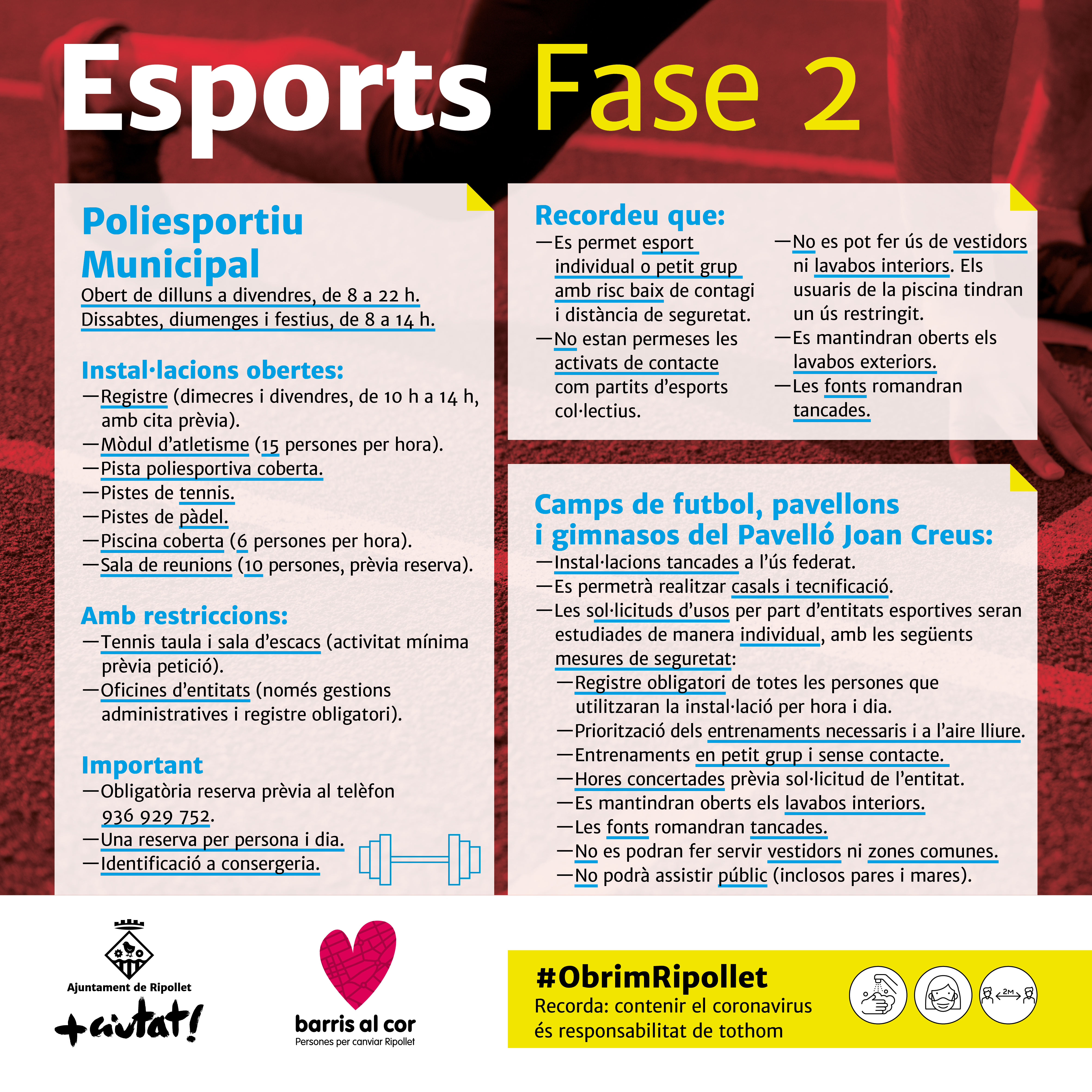 Novetats en el restabliment dels serveis de l'Ajuntament amb l'entrada en la fase 2 #ObrimRipollet
