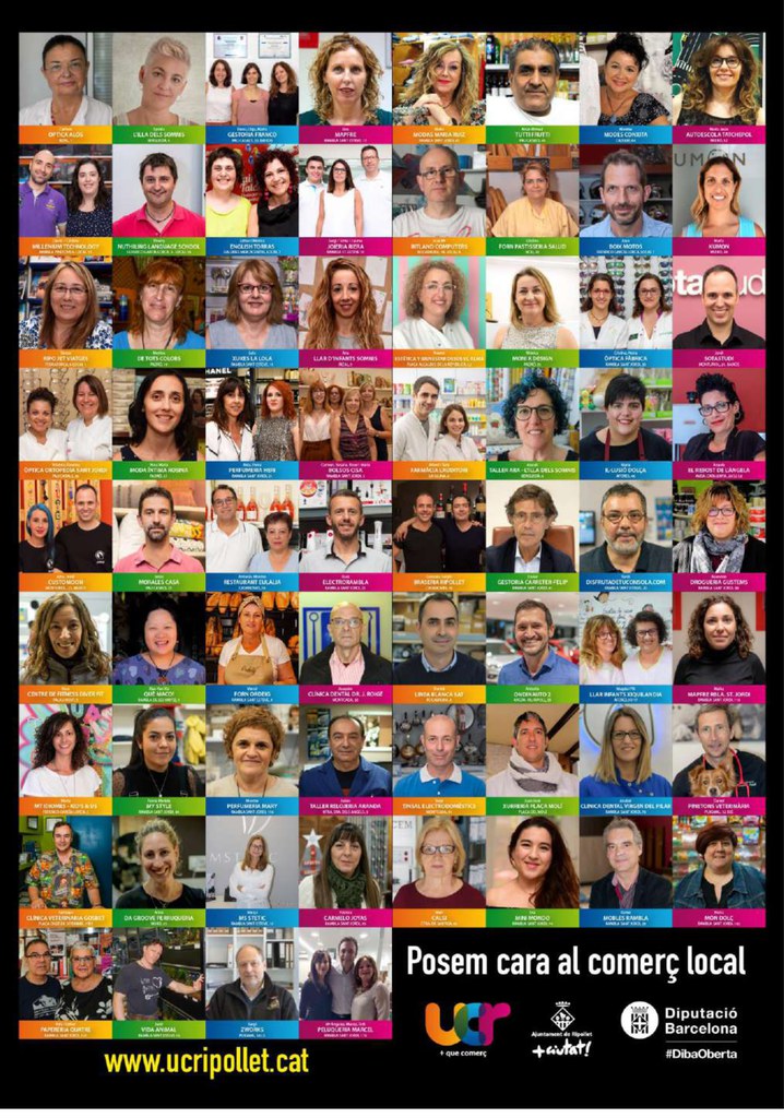 Per fer front a la crisi, causada per la pandèmia, la Unió de Comerciants de Ripollet posa en marxa aquest juliol la campanya "Posem cara al comerç local", amb l'objectiu de sensibilitzar i visibilitzar la importància del comerç local a la societat i la seva repercussió en el teixit econòmic local de la ciutat. La campanya es vertebra en dos eixos: la personificació i apropament dels comerciants a través dels seus retrats i uns missatges de reflexió. Es podrà veure a les botigues des d'aquest divendres. Segons la UCR, amb aquesta iniciativa es vol "donar visibilitat a totes les persones que dia a dia treballen a Ripollet, aportant un gran valor afegit al nostre poble: generar ocupació, col·laborar amb entitats locals, il·luminar i netejar carrers, contribuir econòmicament amb la ciutat, etc.