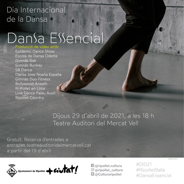 El proper 29 d'abril se celebra el Dia Internacional de la Dansa. Des de fa uns anys, Ripollet se suma a aquesta iniciativa amb un programa d'activitats que duen a terme diferents entitats i col·lectius locals amb el suport de l'Ajuntament; aquest any, més que mai, per posar en valor aquest sector que s'ha vist tant afectat per la pandèmia.