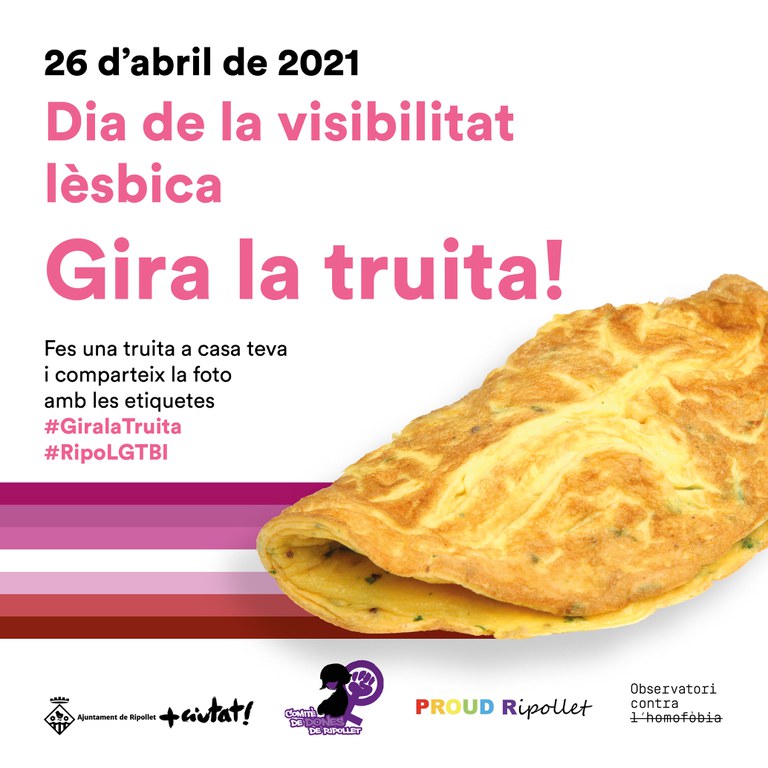 A més d'onejar la bandera lèsbica al balcó de Ripollet Ràdio, per segon any consecutiu, l'Ajuntament ha organitzat l'acte de visibilització 'Gira la truita!' una activitat carregada de simbolisme, que ja se celebra a altres municipis d'arreu de l'Estat, i que a Ripollet es va impulsar l'any passat, durant el confinament. Així, es convida a la ciutadania a fer una truita, amb els ingredients i la forma que vulgui, i compartir la foto a les xarxes socials amb els hashtags #GiralaTruita i #RipoLGTBI. Aquesta activitat compta amb el suport de l'Observatori Contra l'Homofòbia, Proud Ripollet i el Comitè de Dones de Ripollet.