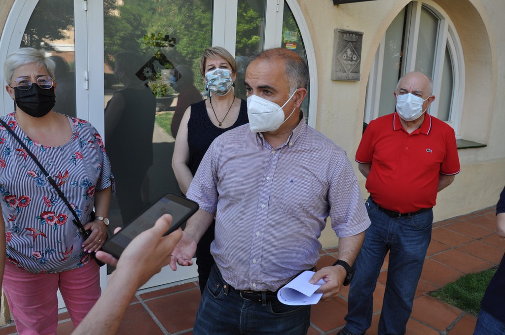 Foto: Luís Tirado, portaveu del PSC, acompanyat d'un representació de regidors del grup socialista, a la roda de premsa de divendres passat, davant l'Ajuntament de Ripollet.