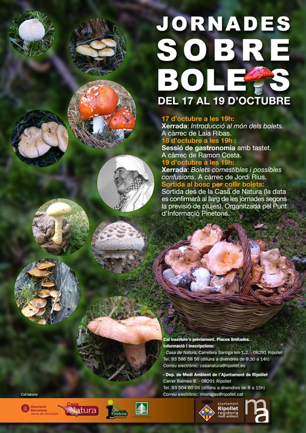 La Casa Natura acull del 17 al 19 d'octubre les Jornades sobre bolets. Enguany, les activitats començaran amb una xerrada, a càrrec de Laia Ribas, que introduirà als assistents en el món dels bolets. El dia 18 d'octubre es realitzarà una sessió gastronòmica, amb tastet i el dia 19, Jordi Rius parlarà sobre bolets comestibles i les possibles confusions que poden tenir lloc. Finalment també està prevista una sortida a buscar bolets, organitzada pel Punt d'Informació del parc dels Pinetons.