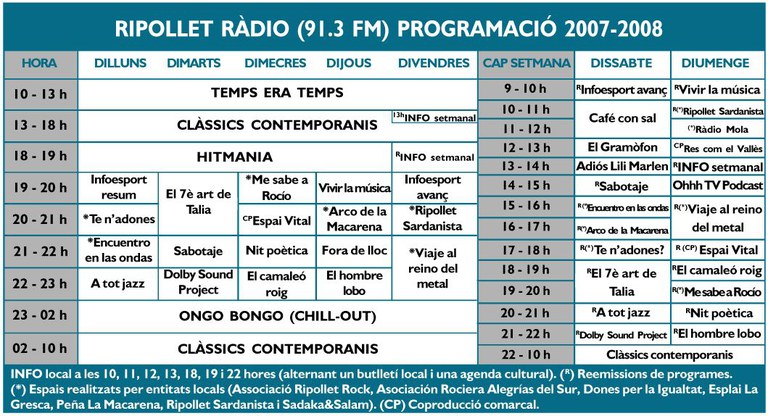 Redifusió divendres a les 18 hores i diumenges a les 13 hores.
